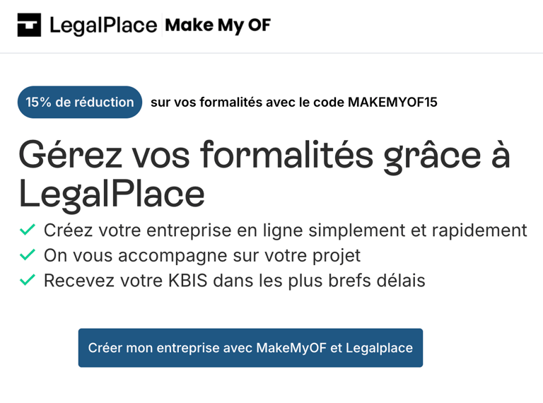 Profitez de notre partenariat exclusif avec LegalPlace pour créer facilement votre entreprise tout en préparant votre futur organisme de formation.